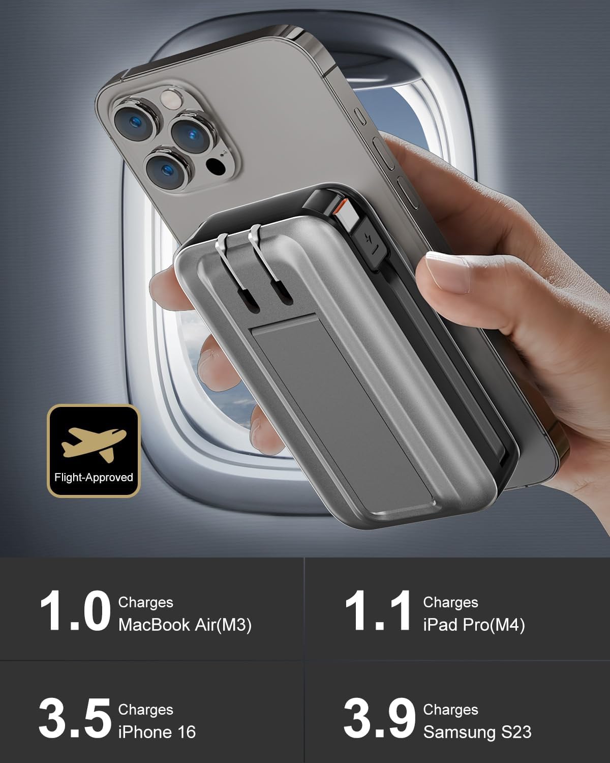 1. 【All-in-One Travel Power Hub】 ✓ 17000mAh Airline-Approved Power Bank with integrated AC Wall Plug (US Standard) + Built-in Cables (USB-C & Lightning); Charge anywhere without extra adapters/cables — perfect for flights, hotels, and emergencies;