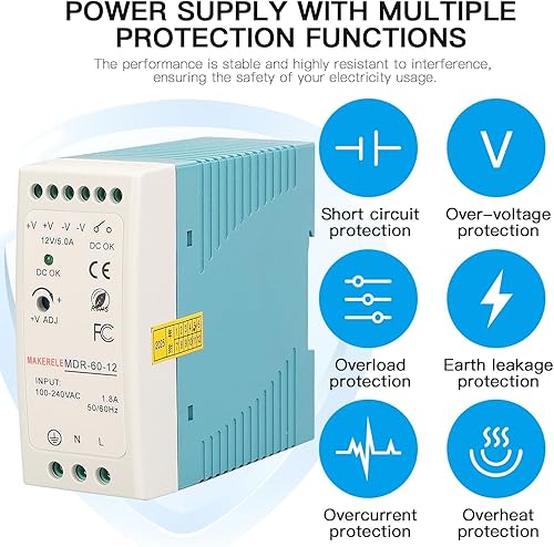 【Safe and Reliable】: Our rail-type switching power supply features multiple protection functions, including short-circuit protection, overload protection, over voltage protection, and temperature protection, ensuring your electrical safety.
