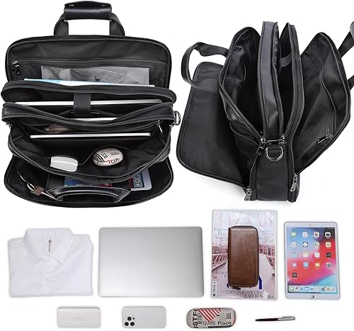 【Travel & TSA Friendly Briefcase】The leather business bags for men are with convertible back design, to switch from back zip pocket to be luggage strap, for easily travel by holding the bag on rolling suitcase to avoid weary carrying. The back 180°lay-flat compartment is easy access and with viewable mesh pocket, for passing airport check quickly.