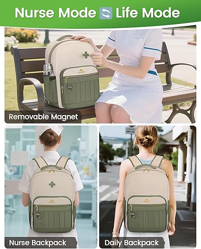 Removable Medical Pouch & Personalization: Nursing backpack for nurses comes with a removable pouch that can be attached to the handle or worn on the wrist, perfect for keeping medical essentials within easy reach. The front magnetic badge is detachable and can be swapped out depending on the occasion, making this nursing backpack for nurses versatile for nursing school or daily work. This flexibility adds convenience and personalization for different settings