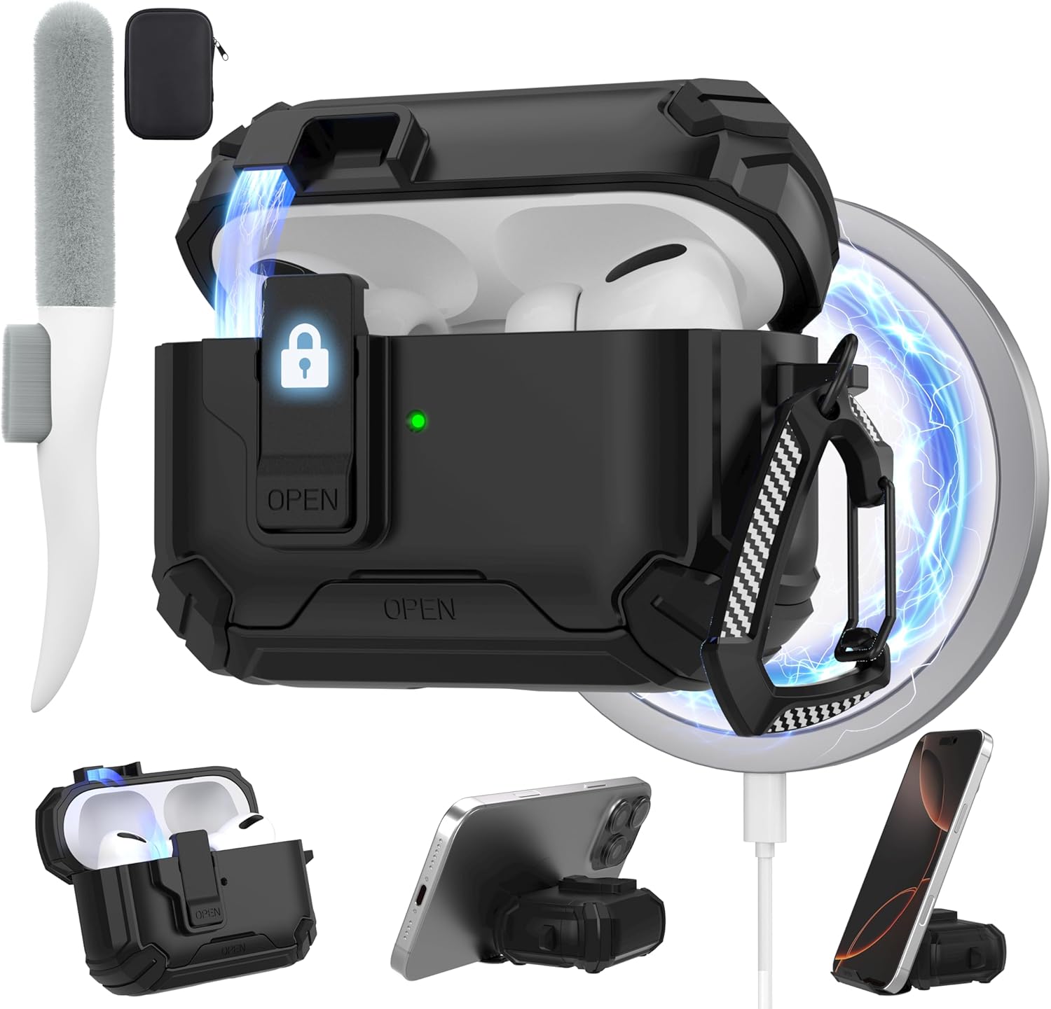【Bracket AirPods Pro 3 Case】The unique bracket design can being used as a mobile phone holder. Help you release both hands hands and enjoy your moments anywhere. Equipped with a cleaning tool to keep your AirPods Pro 3 charging case clean