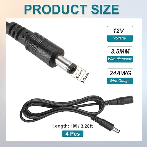Comment on "MECCANIXITY 4PCS 6.56ft Black DC Power Extension Cable 5.5mm x 2.1mm Power Adapter Cable 12V Female to Male for IP Camera, CCTV, LED, Monitors, More(Black,3.28ft)"