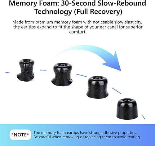 【Noise Isolation with Memory Foam Earbud Tips】: These ear tips made from premium memory foam with noticeable slow elasticity, the ear tips expand to fit the shape of your ear canal for superior comfort and maximum noise reduction. These earbud replacement tips provide a secure seal, helping block out unwanted noise with a perfect fit. Ideal for anyone seeking high-performance ear bud tips.