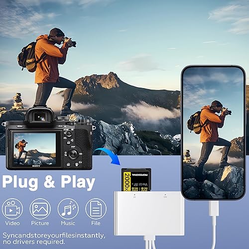 High-Speed 480Mbps Data Transfer: The iPhone SD card reader delivers fast file transfers at speeds up to 480Mbps, making it ideal for photographers and videographers handling large RAW photos, 4K video, and professional media. Quickly import content from your camera to your device or back up files to a memory card.