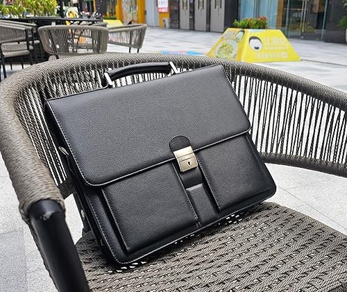 Mens Leather Briefcases Office Attorney Student Attache Case Messenger Bag w/Padded Compartment,Black(Black - Fits 14" Laptop)