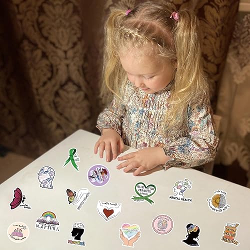 High quality sticker: The sticker is made of waterproof PVC material which are sun protection and waterproof.About 2-3.6 inches 100 pieces of Mental Health Stickers Gifts No duplicates.