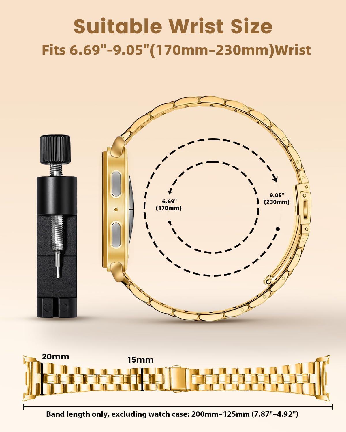 Adjustable Fit: This band for Samsung Watch 8 (40mm) and fits wrists from 6.69" to 9.05" (170mm–230mm)The included link removal tool lets you quickly adjust the band for the perfect fit. Featuring a premium double-button folding clasp, it stays secure on your wrist while allowing you to put it on and take it off with ease