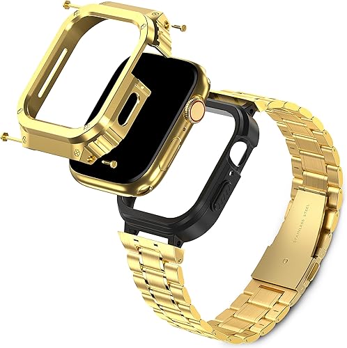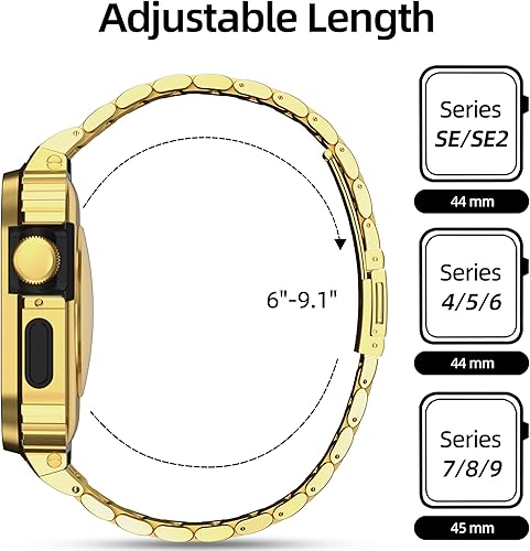 Comment on "Metal Band Compatible with Apple Watch Band 44mm 45mm for Series SE/SE2 9 8 7 6 5 4,Stainless Steel iWatch Band with Bumper Case for Men,iWatch Strap with Metal Protective Cover(Z-Gold,44mm(Series SE/SE2 6/5/4))"