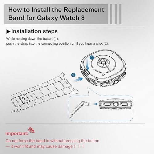 【Package Contents】 1 *Stainless steel band for Samsung Galaxy Watch8 + 1*link remove tool kit + 1*link remove instructions. IF the galaxy watch 8 strap is too short to fit your wrist or the package has no pins, please feel free to contact us : )