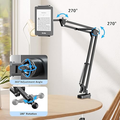 [ Totally Adjustable ] Compared to other gooseneck holder, this tablet arm is more easy to adjust, the head, arm joint and the base are flexible, you can adjust the swing arm angle and height as your wish, and hold your device more sturdy.