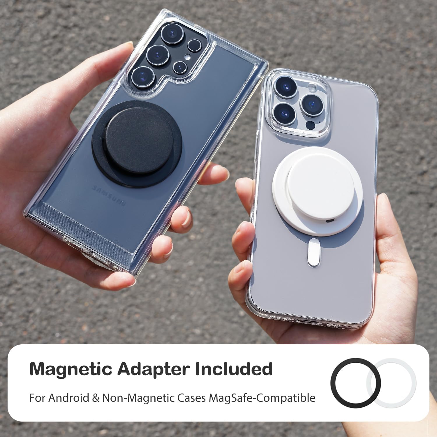 metisinno Phone Grip for MagSafe, Magnetic Stand for iPhone MagSafe Cases, Magnetic Snap Closure, Removable for Wireless Charging, White & Translucent(Black)