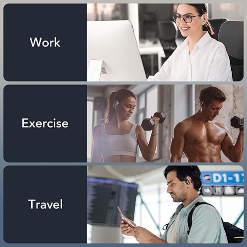 Secure & Comfortable Fit: Open-ear hook design with multiple gel tip sizes ensures a snug, secure fit during cycling, yoga, and workouts.