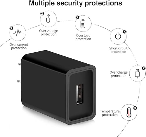 【Safety Equipment】The charger has output short circuit protection, over-current protection, and multiple protection safety systems to provide comprehensive protection for you and your devices. Output: 5V 2A Input: 100-240V 50-60Hz.