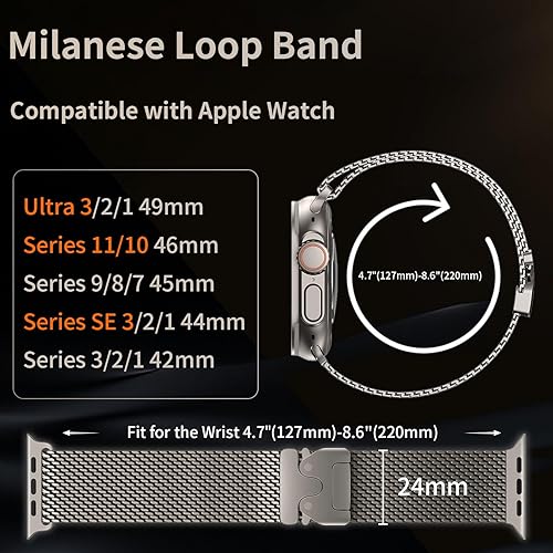 ✅【Fit All Models】Our Milanese loop bands are compatible with Apple Watch Band 49mm 46mm 45mm 44mm. They are all suitable for iWatch Ultra 3, Ultra 2, Ultra 1, SE(3rd Gen), SE(2nd Gen), and compatible with Apple Watch Series 11, Series 10, Series 9, Series 8, Series 7, Series 6, Series 5, Series 4 and Sport Edition(Bands only, NO watch included).