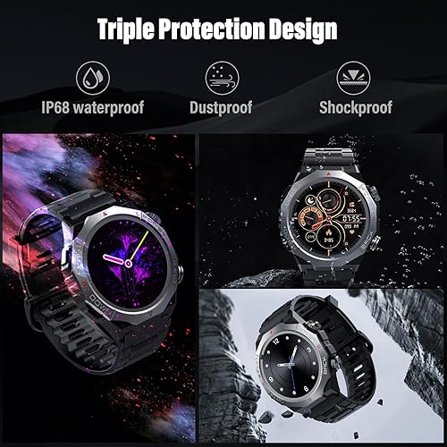 Triple Defense Protection & 110+ Sports Modes: This smartwatch for men offers IP68 waterproof, dustproof, and shockproof protection, withstanding rain, sweat, and impacts—ideal for any adventure. With 110+ sports modes like running, cycling, hiking, yoga, and skiing, this activity tracker tracks heart rate, steps, calories, distance, and activity time. It helps you optimize workouts and create personalized training plans, making it perfect for fitness enthusiasts.