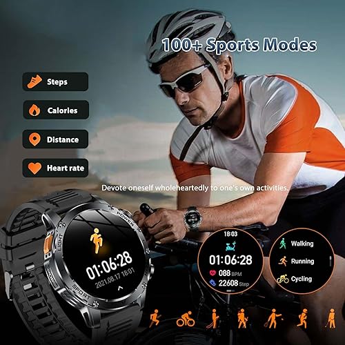 【100+ Sports Modes & IP68】- Men’s tactical smart watches in motor function is strong, has 100+ movement modes, fully covered the sports of kinds of common. The IP68 water resistance rating endows fitness sports smart watch with outstanding water resistance performance. In daily life, sport smartwatch can also easily deal with hand washing, rain, without worrying about moisture will cause damage to the electronic components inside the watch. Devote oneself wholeheartedly to one's own activities.