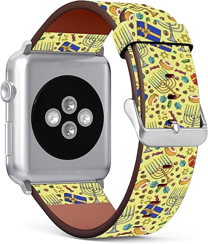 Mingdao Compatible with Apple Watch Series 11 10 9 8 7 6 5 4 3 2 1 SE Uitra 1/2/3, Stylish PU Leather Band Replacement Strap, Chanukah MP6938(Hanukkah MD6938,38mm/40mm/41mm/42mm(Series 10))