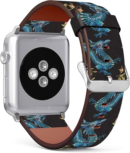 Mingdao Compatible with Apple Watch Series 11 10 9 8 7 6 5 4 3 2 1 SE Uitra 1/2/3, Stylish PU Leather Band Replacement Strap, Religion MP7758(Asian Dragons MD7762,49mm/46mm/45mm/44mm/42mm(Series 3/2/1))