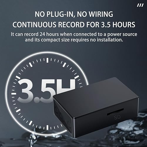 【Long Standby Time】Equipped with a 500mAh rechargeable battery, this mini camera supports record while charging. It automatically saves files when the battery is low.