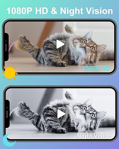 【1080P HD & Night Vision】 : 1080P HD Live video streaming, allow you to check your home/pets/family anywhere via app. This mini wifi camera can auto into night vision mode when it gets dark around.