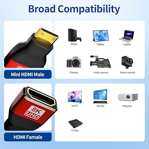 【8K Ultra HD Transmission】The STSAUX Mini HDMI to HDMI adapter adopts advanced HDMI 2.1 standards, delivering stunning 8K@60Hz ultra-high definition resolution with backward compatibility for 4K@144Hz and 2K@240Hz high refresh rate modes. Delivers a lag-free, blur-free exceptional visual experience, perfectly meeting the demanding requirements for high-definition gaming and home theater applications.