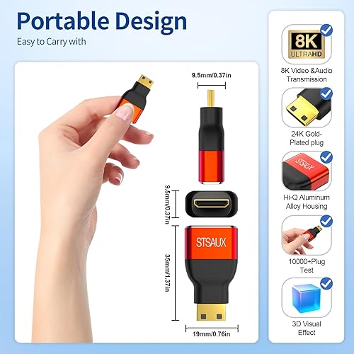 【Plug & Play Portable Design】No drivers required - truly plug and play functionality. The compact and lightweight design of the STSAUX mini adapter allows it to easily fit into pockets or camera bags, making it an ideal companion for business presentations, outdoor photography, and mobile office use. (Please note: Ensure your device uses a Mini HDMI port, not Micro HDMI or Micro USB)