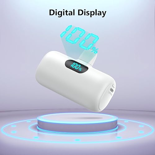 【5000mAh iPhone Charger with LCD Display】With a 5,000mAh battery capacity, stay powered throughout your day, making it ideal for travel and outdoor activities. Smart LCD digital display shows the exactly battery percentage of the power bank.