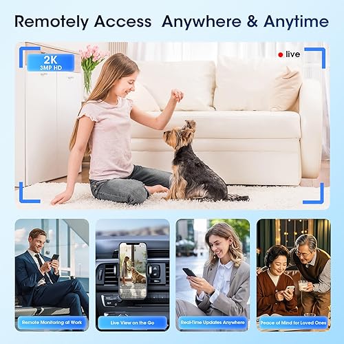 [2K Ultra HD Clarity + 140° Wide-Angle View] Capture every detail with 2304x1296 resolution—sharper than standard 1080P. The 140° wide-angle lens ensures broader coverage with fewer blind spots. It’s your second pair of eyes when you’re away, keeping watch over your loved ones or workspace.
