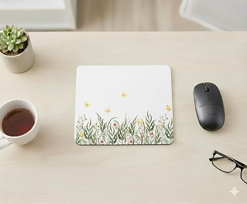 Minimalist Meadow Mouse Pad with Floral and Butterfly Design | Elegant Non-Slip Desk Mat for Office or Home
