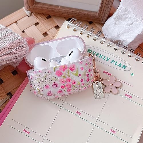 MINSCOSE Compatible with AirPods 4 Clear Case, Cute Cartoon Flower Aesthetic Design with Pink Floral Keychain Soft TPU Protective Shockproof Cover for Airpod 4 for Women Girls-Pink Flower(Pink Flower,AirPods Pro/Pro 2)