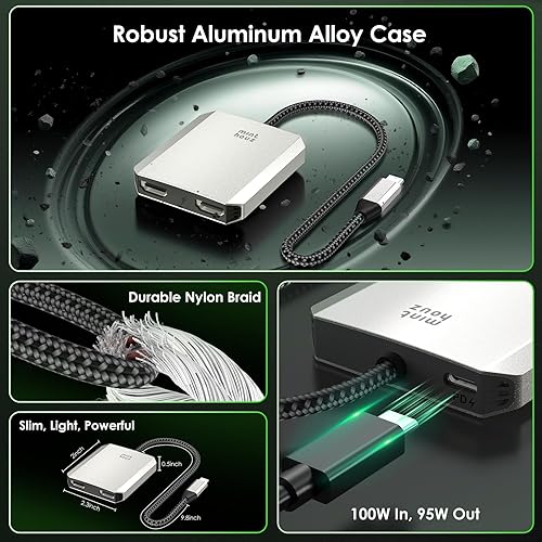 [Durable, Travel-Friendly Design] Hdmi Splitter for Dual Monitors Crafted with a sleek aluminum alloy shell for efficient heat dissipation and long-term durability, this compact adapter also features a reinforced braided nylon cable that resists fraying and bending. Its lightweight, portable design makes it ideal for use at home, in the office, or on the go usb c docking station.