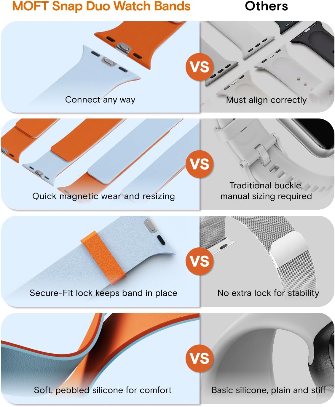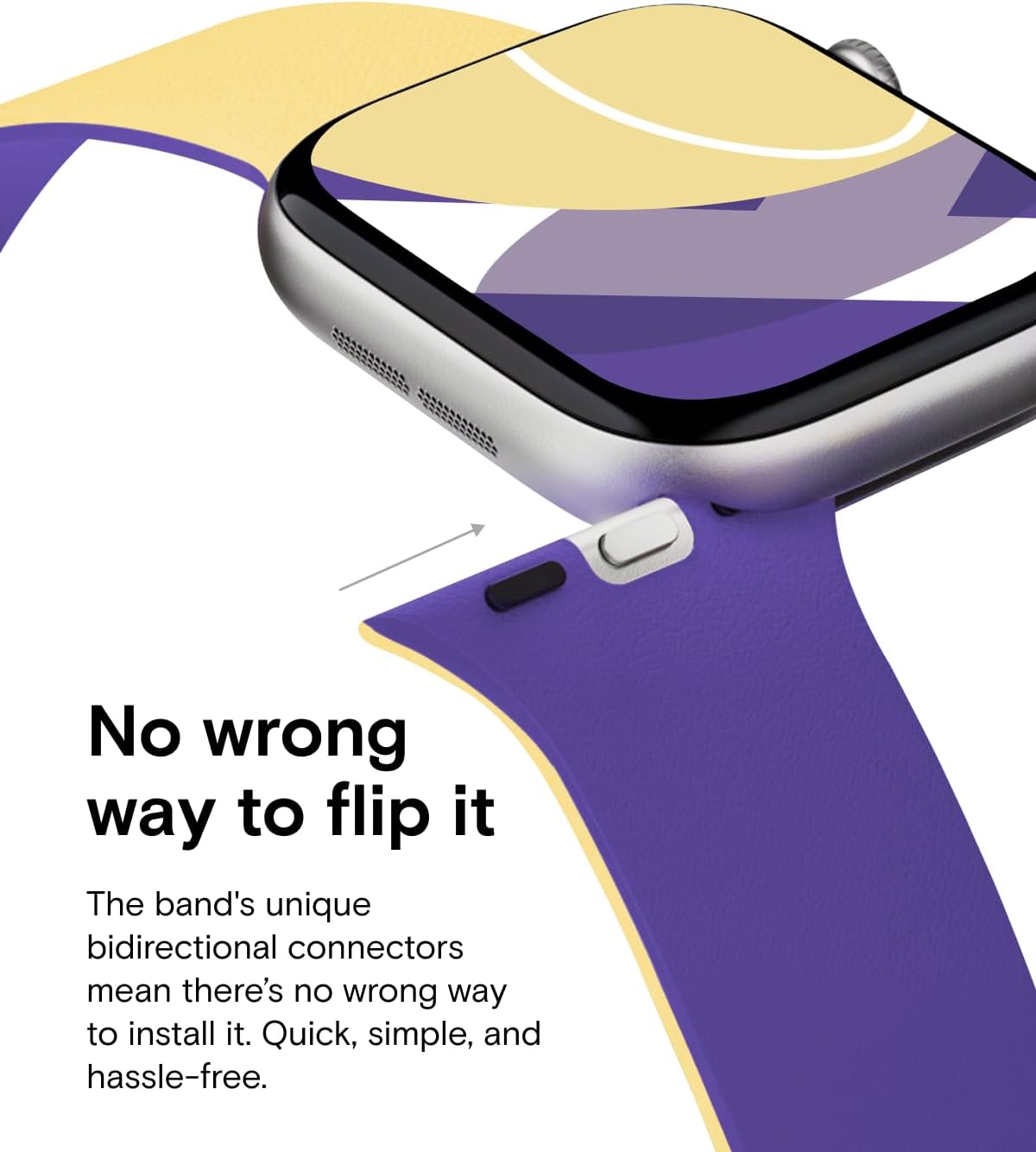 No wrong way to flip it: The watch band's unique bidirectional connectors mean there's no wrong way to install it. Quick, simple, and hassle-free. The innovative design guarantees a perfect universal fit every time, making style changes effortless and instantly.