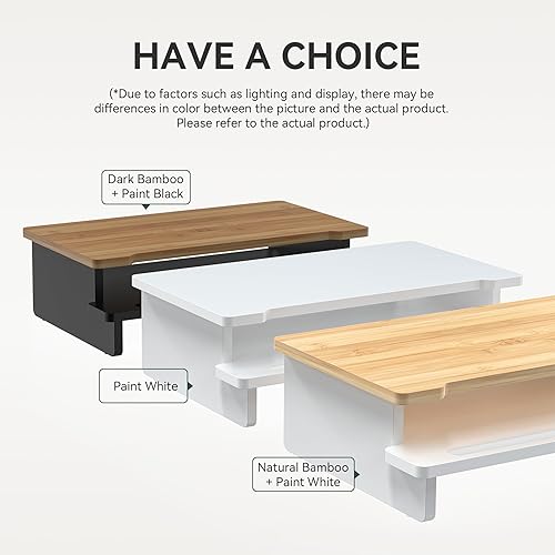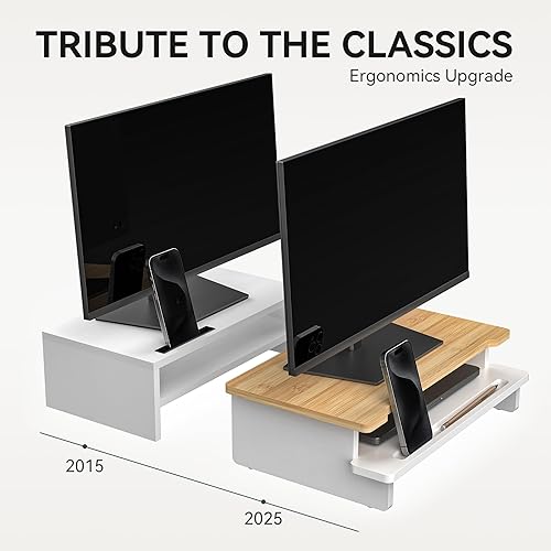 Monitor Stand Monitor Stand Riser for Desk,Wood Desk Shelf Storage Organizer with Phone Tablet Holder (16.5 Inch, Black & Dark Bamboo)(White & Natural Bamboo,16.5 inch)