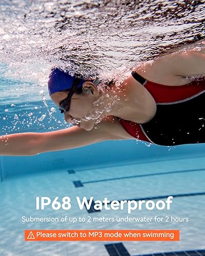 Swimming Headphones: With a professional IP68 waterproof rating, these bone conduction earbuds are built for underwater use—perfect for swimming. They’re an ideal companion for swimmers, fitness enthusiasts, cyclists, and runners. (Note: Please switch to MP3 mode while swimming, as Bluetooth mode cannot transmit signals underwater)