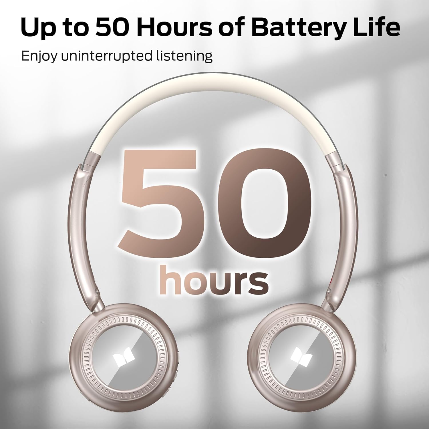 Long Battery Life: 50-hour Bluetooth headphones—uninterrupted audio for travelers, athletes, and homebodies. Minimal charging, consistent sound quality. Enjoy audio freedom on the go or at home.