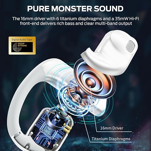 Pure Monster Sound - Experience the impressive audio performance of the Monster Open Ear AC210 headphones. Featuring advanced Monster HiFi sound technology, these open ear headphones deliver rich, dynamic sound with deep bass and crystal-clear highs. Enjoy your favorite music, podcasts, and calls with exceptional clarity and detail. Whether you are at home or on the go, these open earbuds promise an immersive listening experience that you won't want to miss.