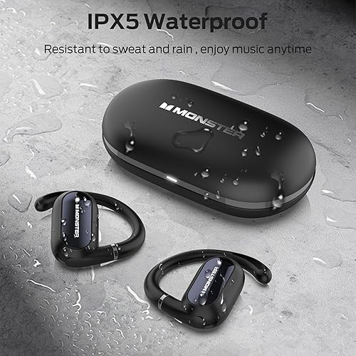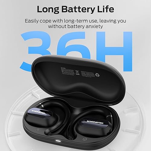 Monster Open Ear AC322, Bluetooth 5.4 Headset, 36H Battery Life, IPX5 Waterproof, Clear Communication, Ergonomic Design, Ear Angle Adjustable, Not Easy to Fall Off Wireless Bluetooth Headset.(E65BK)