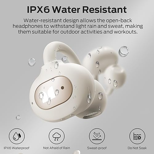 【IPX6 waterproof】 These open ear earbuds are IPX6 water-resistant, protecting them from strong jets of water from any direction. This makes them perfect for any weather conditions or intense workouts, where sweat and water exposure are common.