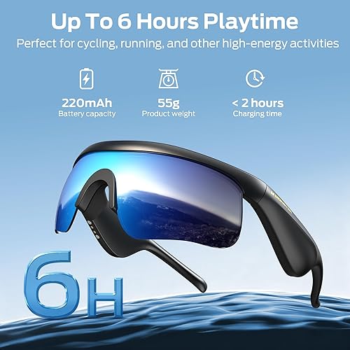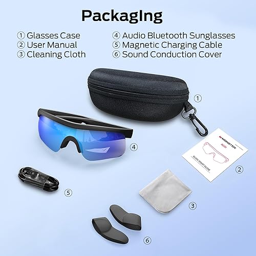 【What You Get】:Smart bluetooth sunglasses*1,Charging cable*1,Glasses case *1,User manual*1,Glasses cloth*1. If you have any questions, pls feel free to contact us. Sports sunglasses are perfect for cycling, riding a motorcycle, driving, skiing,mountain climbing, fishing, hiking,boating, and other activities.