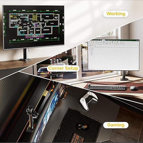 Fully Adjustment: Our single monitor stand provides -45° to +45° tilt, -90° to +90° swivel, 360° rotation for the display, and ±90° adjustment at each joint of the stand arm. Adjust the monitor angle and choose a comfortable posture, whether you are working or playing, and say goodbye to backache and neck strain.