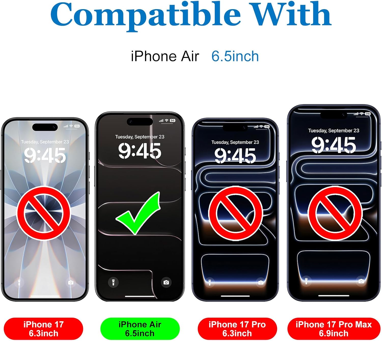 【Full Coverage Protection】 The glass edges are specially polished for a smoother touch, go further than 2.5D round edge, not easy to be broken and extremely durable. Edge to edge full screen coverage protects your iPhone Air screen from scratches, daily wear and drops.
