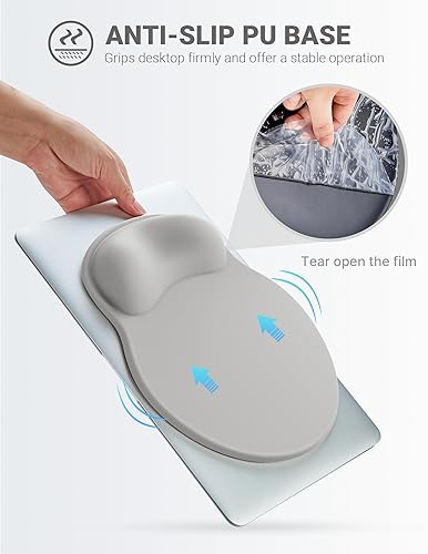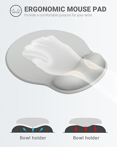 Mouse Pad with Wrist Rest, Ergonomic Mouse Pads for Desk, Office Non-Slip Mousepad with Gel Wrist Support(Light Gray, 10.6''L x 9''W)(Light Grey,10.6L x 8W inches)