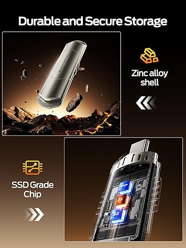 1000MB/s Stable Transfer Speed:MOVE SPEED USB drive has a full-speed write speed of 1000MB/s on USB A + USB C dual ports and can stably maintain a speed of more than 800MB/s during continuous writing. When using the thumb drive no need to worry about speed drops anymore. It ensures a smooth and high - speed experience when transferring large files such as 4K videos massive game data or batch documents.
