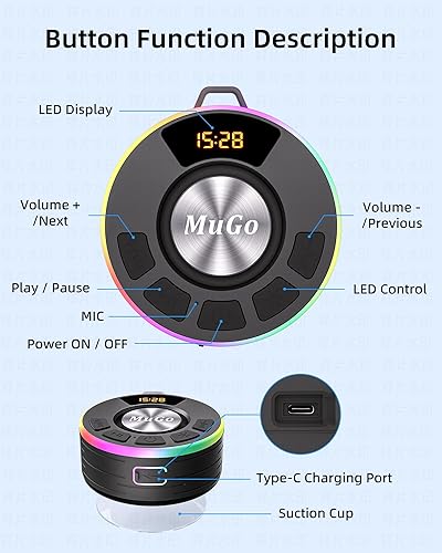Comment on "MuGo Bluetooth Shower Speaker, 360° HD Stereo Sound, IPX7 Waterproof Wireless Speaker Bluetooth 5.4 with RGB Lights, Suction Cup and Microphone, Small Shower Radio for Home/Party/Outdoor/Gifts"