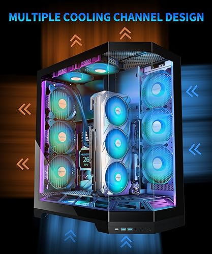【Good Heat Dissipation/Cool Effects All Want】MUSETEX pre-install 5 adjustable speed ARGB fans in mid tower case for lighting enthusiasts,through motherboard software control,customize various light modes,colorful and dazzling lights!Fans use anti-vortex blades to ensure proper airflow inside pc case atx, use software regulates fans' speed fully,along with stable air intake performance of side fans,achieving better cooling performance than ordinary computer cases, extending the life of the hardware!