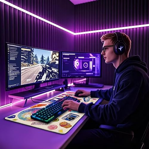 VERSATILE USE: This large mouse pad is excellent for All mouse types. Great for gaming, office work, and creative tasks. Ideal gift for gamers, office workers, designers, graphic designers, video editors, or programmers who use multiple devices such as tablets and keyboards, and the favorite of Content creators and streamers, artists, casual users seeking clutter free desks for multitasking such as work, gaming, and learning, as well as enthusiasts who enjoy immersive settings in theme design