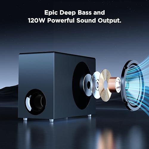 Immersive Sound Experience: Revitalize your home entertainment system with the MZEIBO soundbar, delivering a powerful 120W audio output for a rich, full-range sound experience. Whether you're enjoying music, watching movies, or gaming, the soundbar offers clear dialogue, dynamic bass, and crisp highs. The included subwoofer provides powerful bass effects, making every note and sound detail come to life. Additionally, the soundbar’s elegant design seamlessly blends into any home theater setup, enhancing your audio-visual experience and making you feel as if you’re in a movie theater.