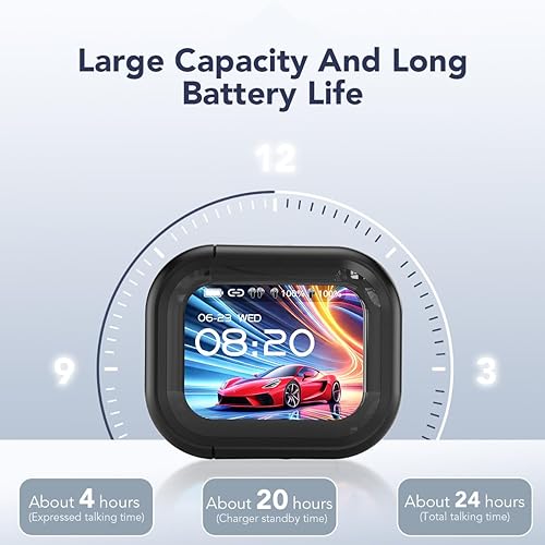 【LCD Touch Screen Control】With an intuitive LCD color display, these language translator earbuds let you control over 9 functions directly from the earbuds, including music playback, volume adjustment, EQ modes, language selection, alarms, stopwatch, and even remote camera control. No need for your phone — everything is accessible directly through your ai translator earbuds.