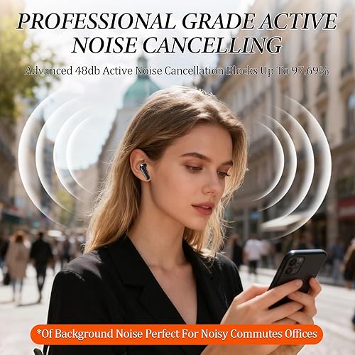 Professional Grade Active Noise Cancelling:Advanced 48db Active Noise Cancellation Blocks Up To 97.69% Of Background Noise Perfect For Noisy Commutes Offices Or Focused Study Sessions In Bustling Environments
