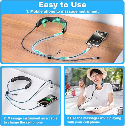 【Breakthrough Design, 3-in-1 Portable Massager】Neck massager + USB C charging cable + cell phone lanyard 3 in 1, reduces the volume of the massager at the same time, both cell phone to power the massager, not limited to the power limitations, can also be used as a charging cable while charging the phone while massaging, you can comfortably play with your phone or tablet while enjoying the massage. Whether you are traveling, or resting at home, or as a gift for others, it has novelty and practicality.